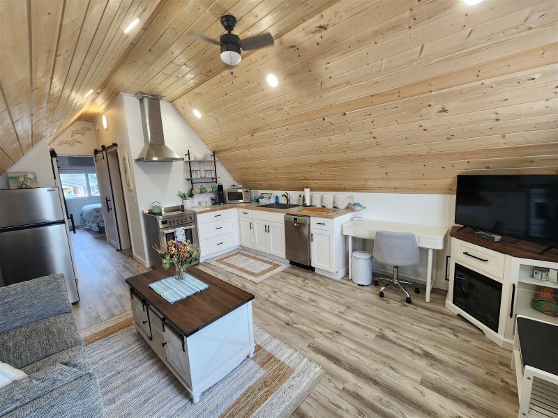 Our beautiful fully renovated condo is available for short term monthly and is fully furnished. It is above our rental office right here in downtown Ocean Shores. This is the perfect set up for a traveling nurse or a single person transitioning into a new home.