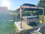 The backyard offers a fenced in yard, hot tub, picnic table, fire pit and a park grill.