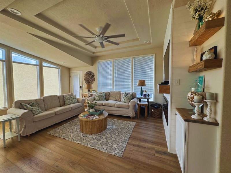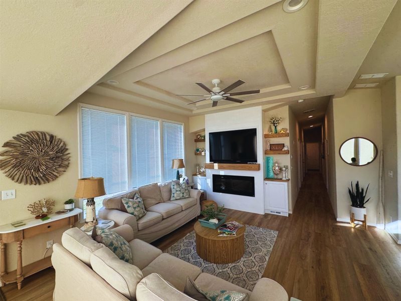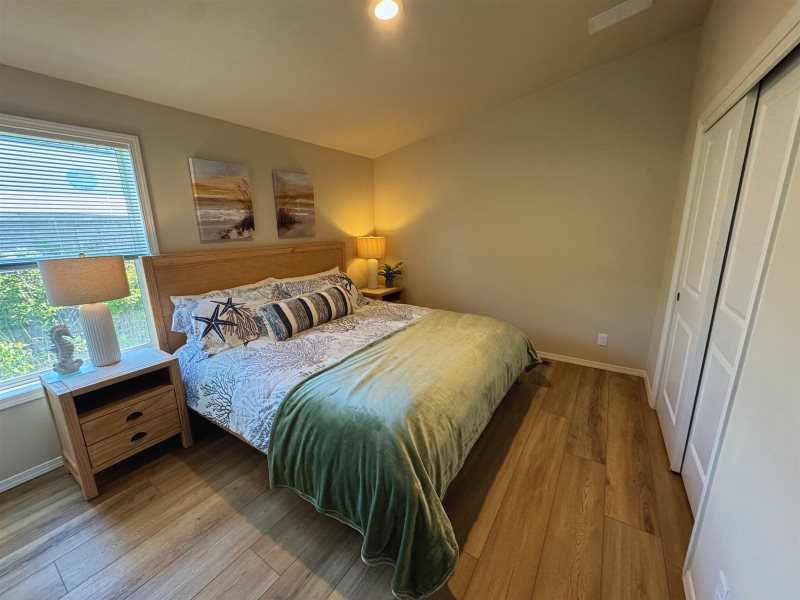 The home is beatifully decorated. The living area is open and bright with an electric fireplace for the chilly beach evenings.